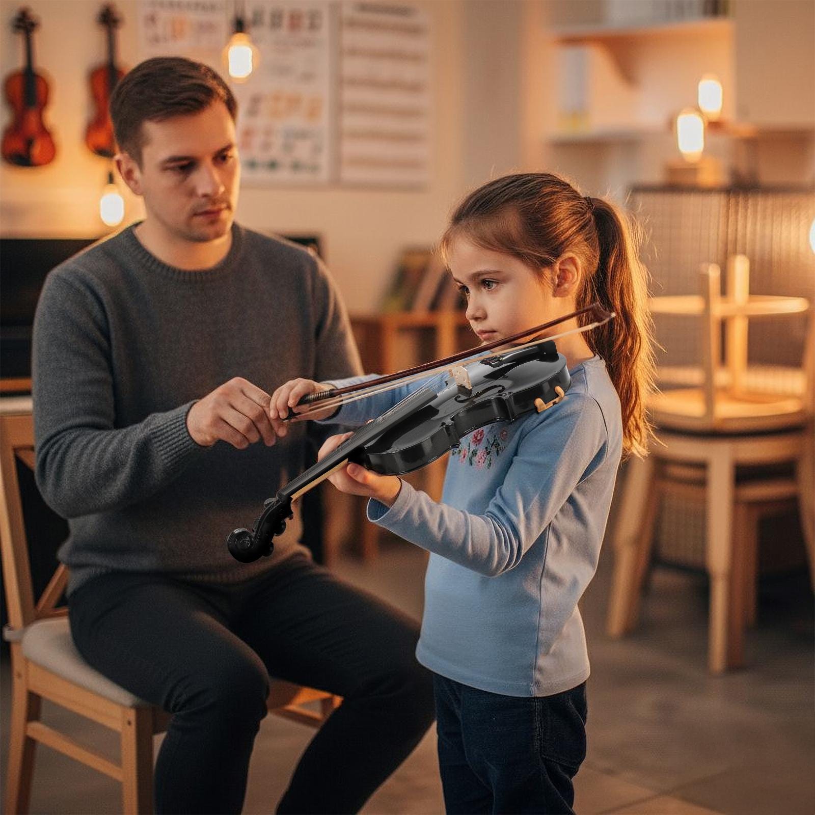 This elegant black acoustic violin set combines classic craftsmanship with modern durability - ideal for students, learners, and music enthusiasts. The full-size 4/4 violin includes a high-quality bow, rosin, and soft protective case, making it a perfect starter kit for anyone beginning their musical journey.