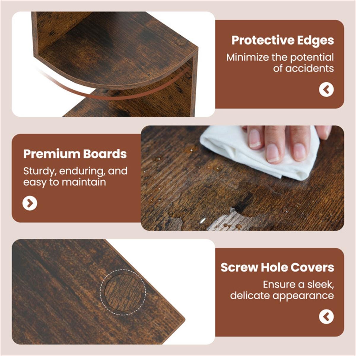 ✨ Elegant Rustic Brown Finish: Smooth rounded edges and concealed screw holes for a clean, sophisticated look. Adds a modern rustic charm to any room.